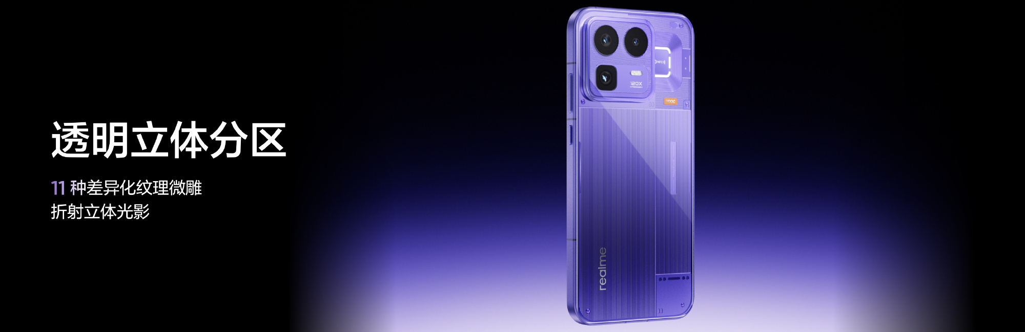 真我 Neo8给与透明 RGB 谋划,全新透明立体分区工艺,雕琢 11 种浅深不一的纹理,让光影在背版上折射出不同的光彩,还雕琢有 Make it real.的铭牌,并具有金属中框、玻璃后盖、优雅大 R 角、超窄视觉四等边等旗舰花式,提供赛博紫、发祥白、机甲灰三款配色。