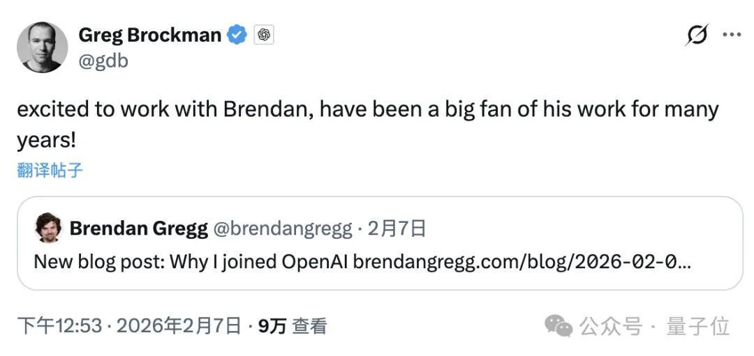 Brendan被时间圈敬称为“性能之神”,他的到来,受到了OpenAI总裁Brockman的切身迎接。