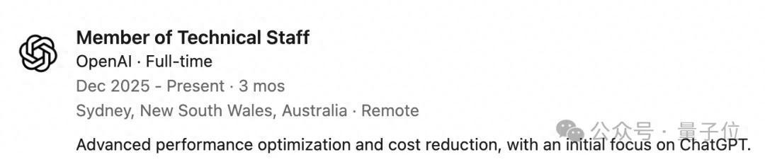 入职后,他将加入ChatGPT性能团队,在澳大利亚良友办公,向团队负责东说念主Justin Becker讲演职责。