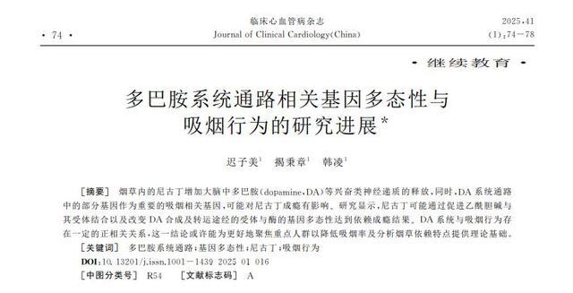 [1]迟子好意思,揭秉章,韩凌.多巴胺系统通路相干基因多态性与抽烟步履的磋商进展[J].临床心血管病杂志,2025-01-13